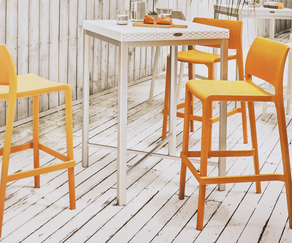 patas, asiento y respaldo: de dos piezas en polipropileno de alta resistencia y duración para intemperie, resistente a los rayos ultravioleta (UV) y al ambiente salino.