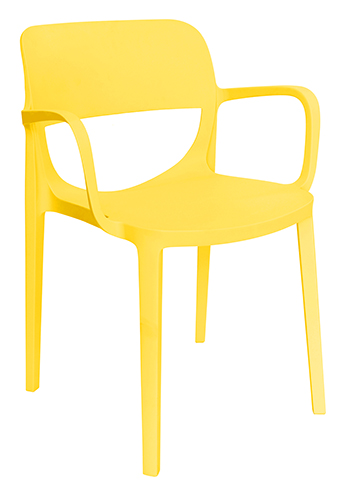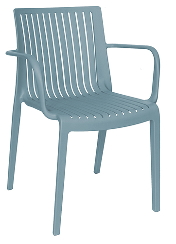 patas, brazos, asiento y respaldo: de una sola pieza en polipropileno de alta resistencia y duración para intemperie, resistente a los rayos ultravioleta (UV) y al ambiente salino.