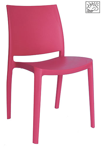 respaldo, asiento y patas: de una sóla pieza en polipropileno de alta resistencia y duración para intemperie, resistente a los rayos ultravioleta (UV) y al ambiente salino.