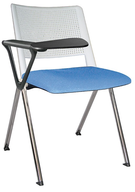 La parte superior del apoyabrazos tiene la particularidad de girar sobre su eje. En la posición vertical permite el apilamiento de la silla con sus brazos, también posible en la versión brazo con paleta.