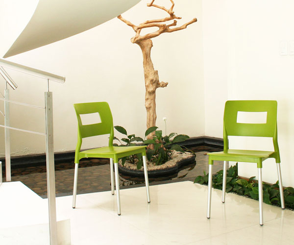 asiento y respaldo: de una sóla pieza en polipropileno de alta resistencia y duración para intemperie, resistente a los rayos ultravioleta (UV) y al ambiente salino.