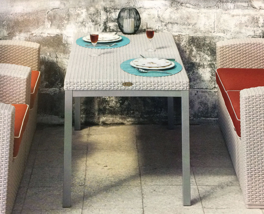 mueble: en polipropileno de alta resistencia y duración para intemperie e interior, resistente a los rayos ultravioleta (UV) y al ambiente salino con terminado en imitación rattán.