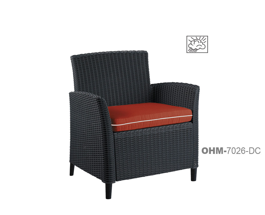 cubierta: En copolímero de polipropileno, diseño ergonómico; para uso a la intemperie e interior. Resistente a los rayos ultravioleta (UV) y al ambiente salino. Terminado en imitación rattán.