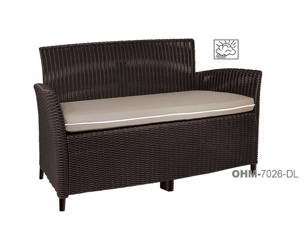 banco: en polipropileno de alta resistencia y duración para intemperie e interior, resistente a los rayos ultravioleta (UV) y al ambiente salino con terminado en imitación rattán.