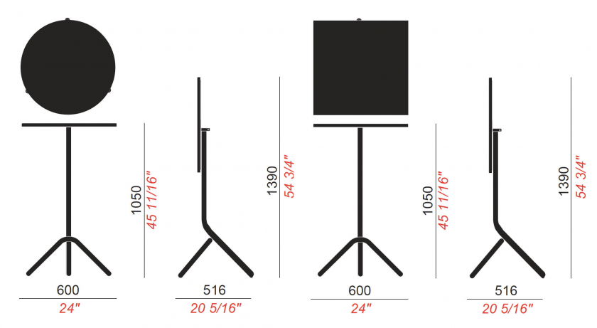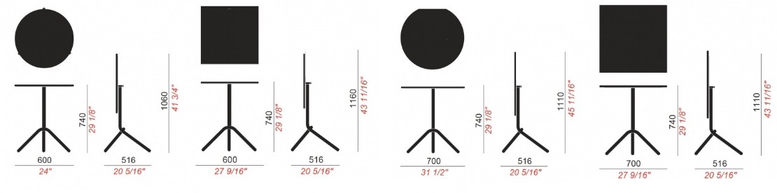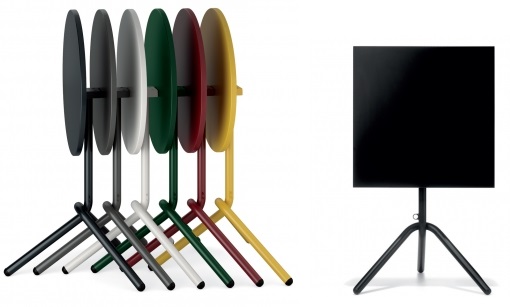 La mesas TA/1 se destacan para el top redondo en hoja de metal, disponible en dos diametros, hecho con una tecnica particular para que sea ligero y solido al mismo tiempo.